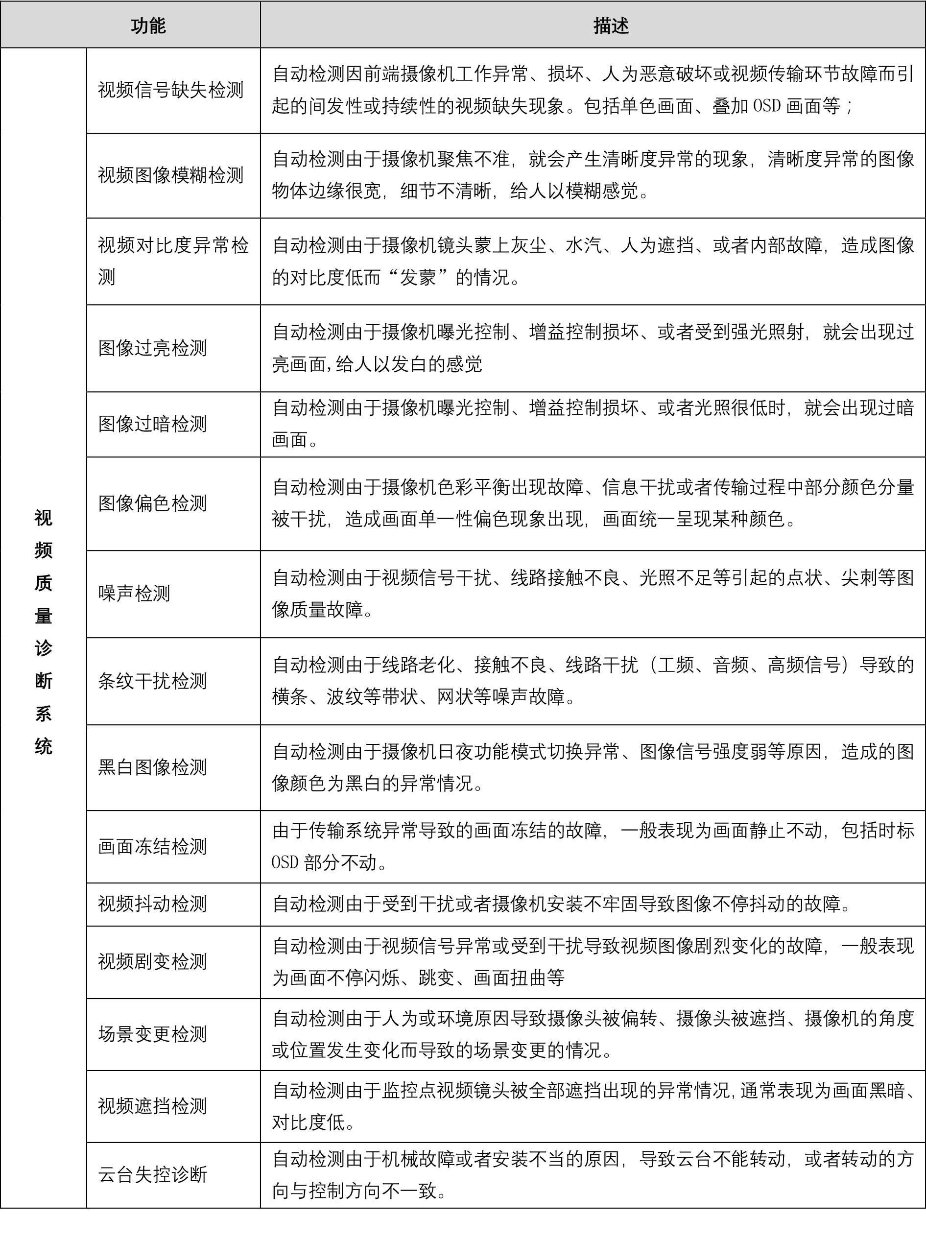 攝像頭部分:鏡頭污濁清理、攝像頭掉線處理、視頻遮擋處理(特殊情況需雙方協調處理)、圖像模糊對焦服務、視頻抖動處理服務、場景同地點變更服務、云臺異常檢修服務、免費提供常用型號備用機服務(備用時間不超過1個月,全年不超過12次)、免費更換服務(指免費更換甲方提供的替換機)等。通信部分:通信線路定期免費維護、巡檢;重要監控區域通訊故障應急通信服務