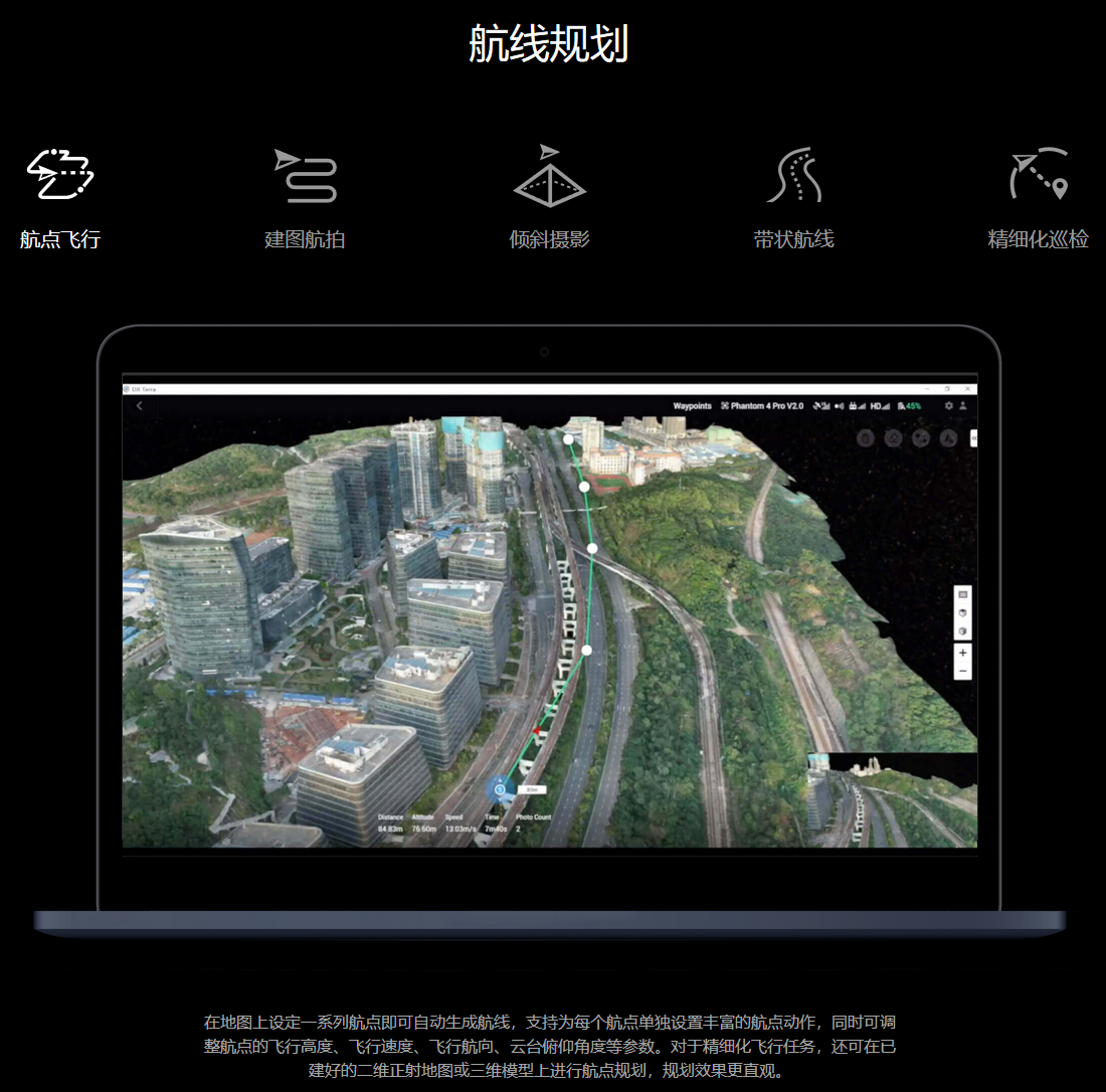 一款提供自主航線規劃、飛行航拍、二維正射影像與三維模型重建的 PC 應用軟件。一站式解決方案幫助行業用戶全面提升航測內外業效率,將真實場景轉化為數字資產。
